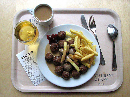 Food courts are a great place to witness our culture of disposablity in action. Food items are transferred from counter to table in reels of waxed paper, cardboard, aluminium and sometimes even styrofoam (which basically never ever breaks down). 10 minutes later (or less if you’re like me) all those resource intensive “disposable” goods make their way into the nearest bin and then eventually, off to the landfill or incineration plant. In an effort to reduce all that waste and add a little class on the side, some food courts like those in the Toronto Eaton’s Centre have started to offer – gasp – REAL plates, cutlery and glasses.